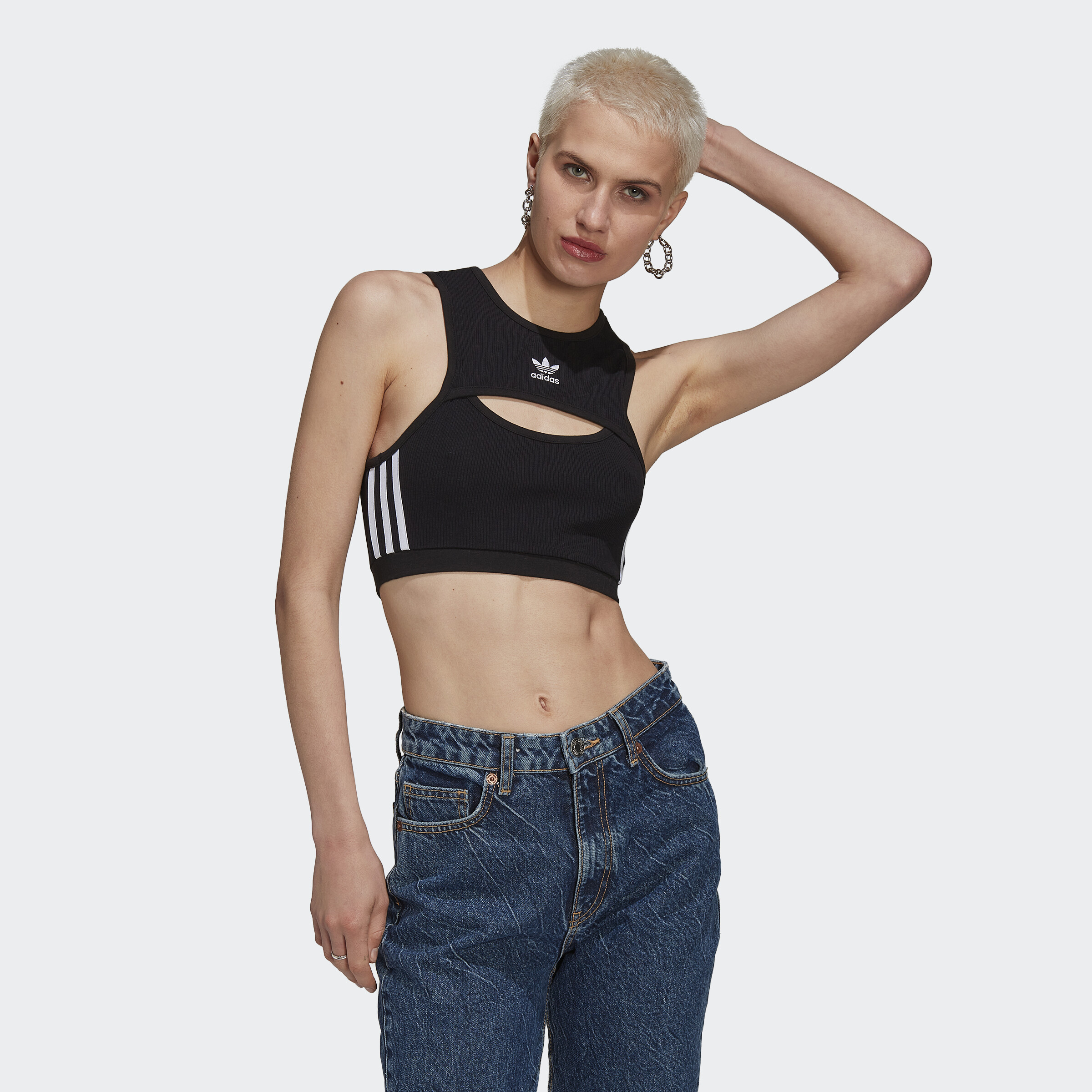 Little details really do go a long way. Case in point — this adidas top. The 3-Stripes keep your look authentic, the tight fit flatters your shape and a cutout in the front brings a touch of drama. All that's left is deciding whether you're going to wear it with cycling shorts or leather pants. Our cotton products support more sustainable cotton farming.